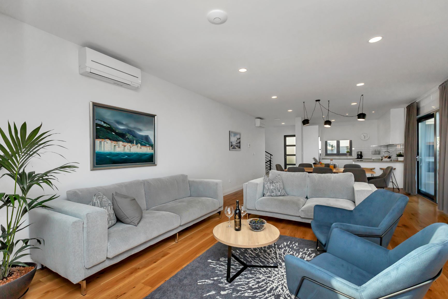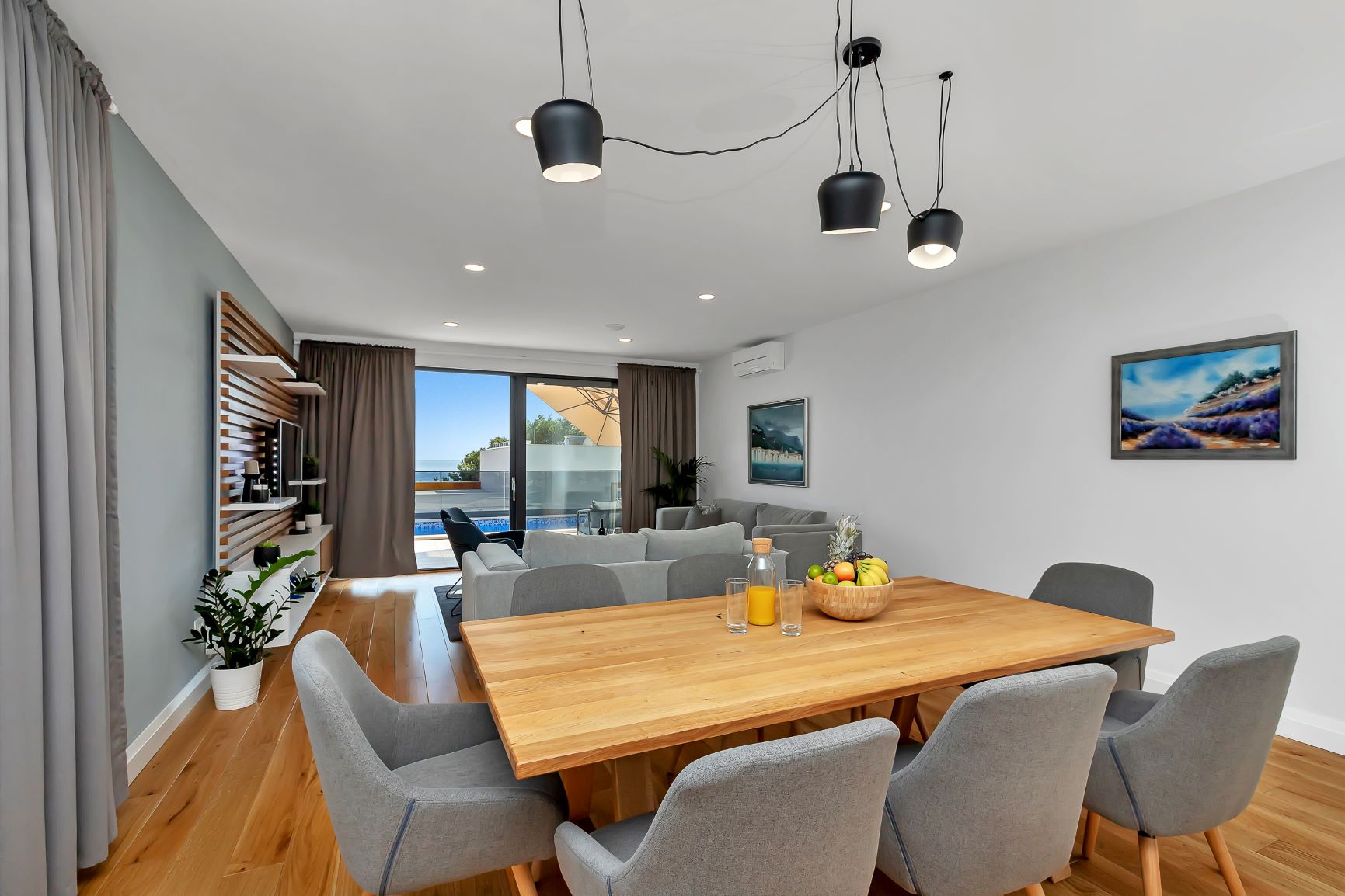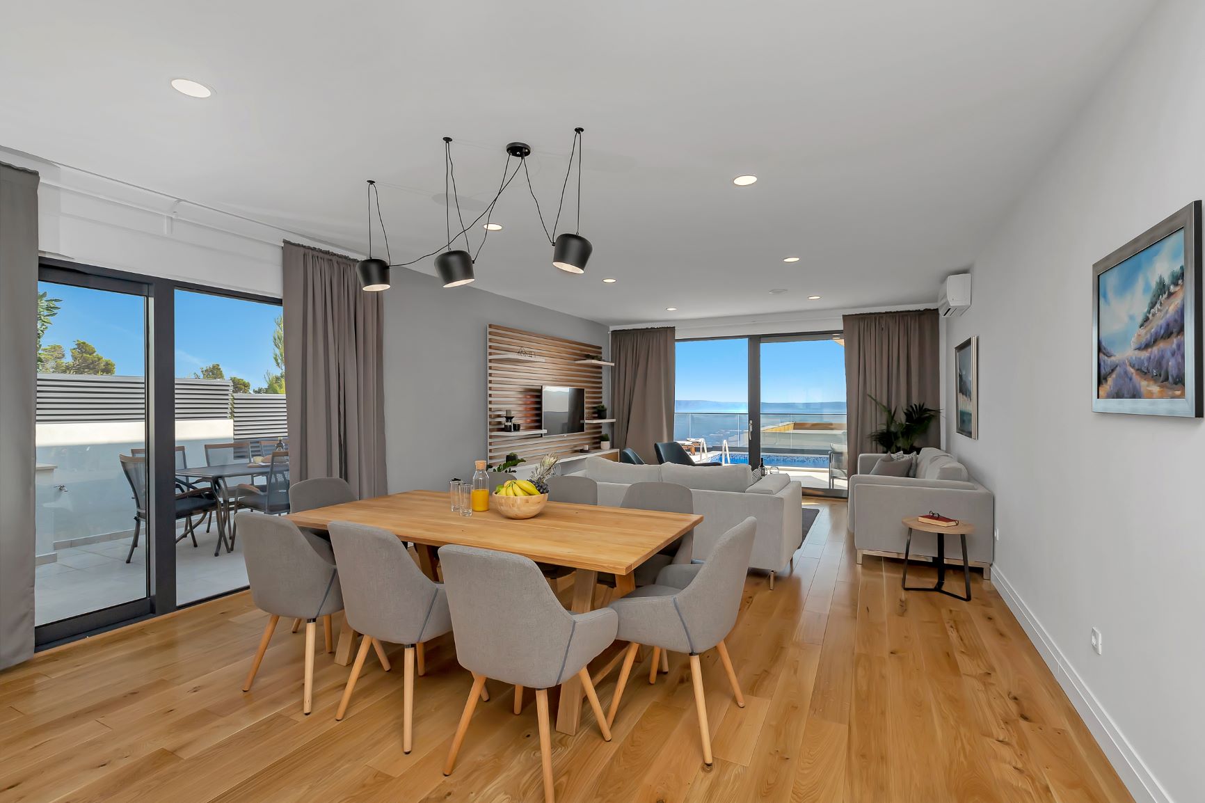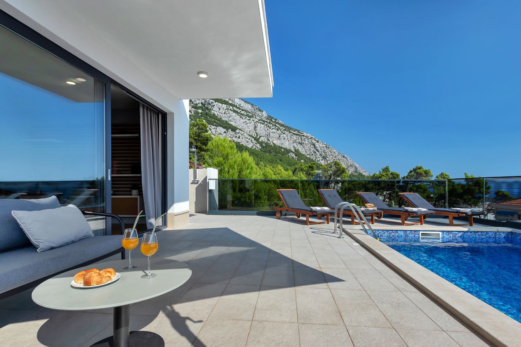 Villa Mendula is a spacious and luxurious house located on the mountainside of Makarska. It is situated few minutes drive from Makarska town and beautiful Makarska beaches. This new villa is surrounded by mountain view of Biokovo and panoramic sea view of the Adriatic Sea. This beautiful house offers absolute rest and relaxation. Villa “Mendula” offers holiday comfort up to 8 persons.