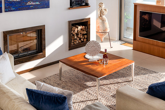 The outdoor features of this villa include a heated infinity pool with massage pumps surrounded by a large and furnished sun deck. The swimming pool is perched above the sea and offers a stunning setting with unforgettable views of sea and the beach. A terrace with comfy daybeds surrounds the pool. The outdoor grill with the dining area up to twelve will complete your relaxation.