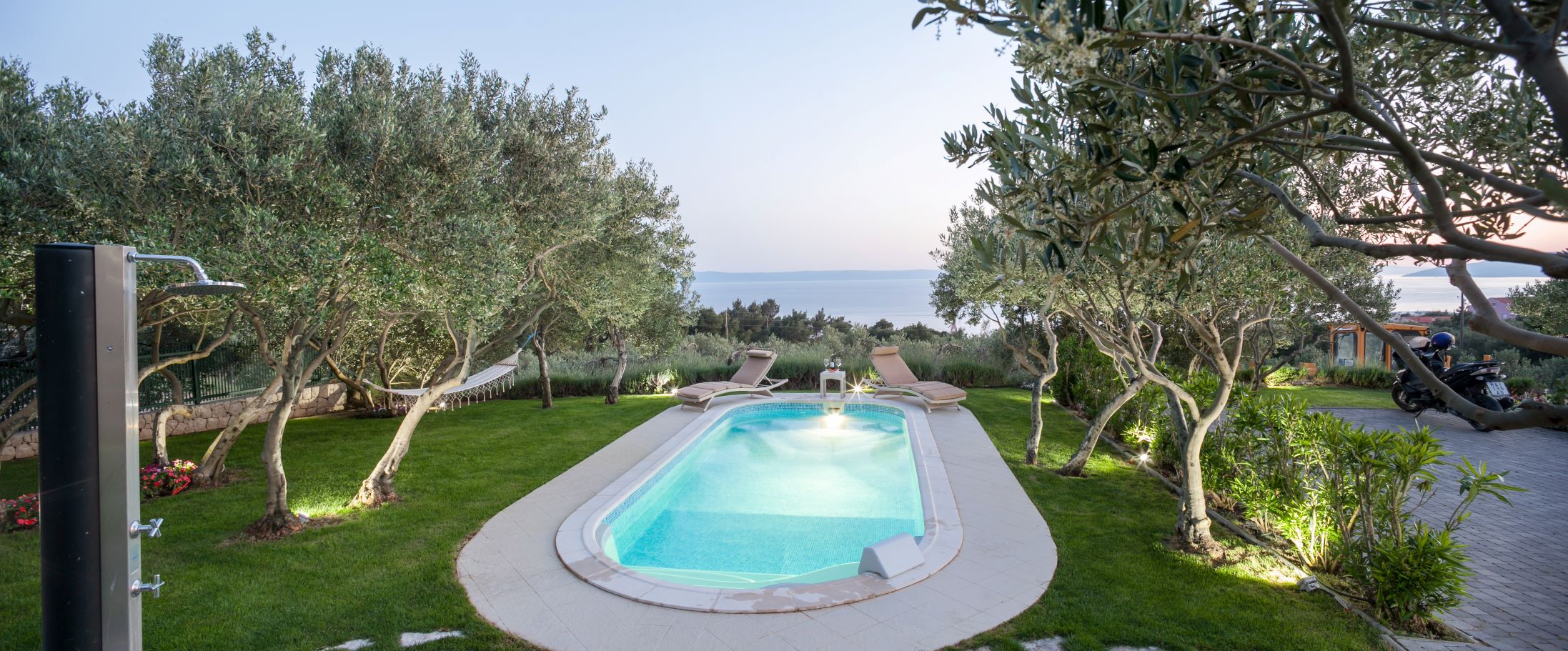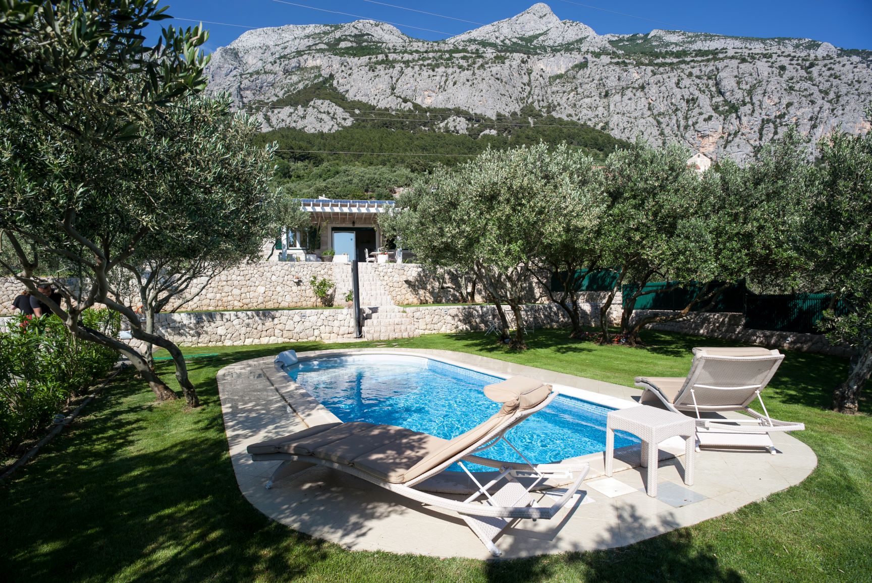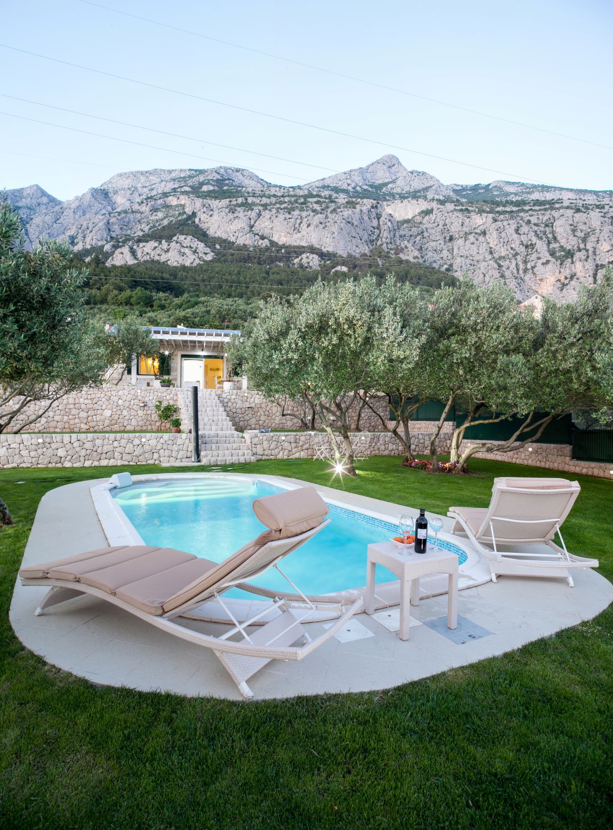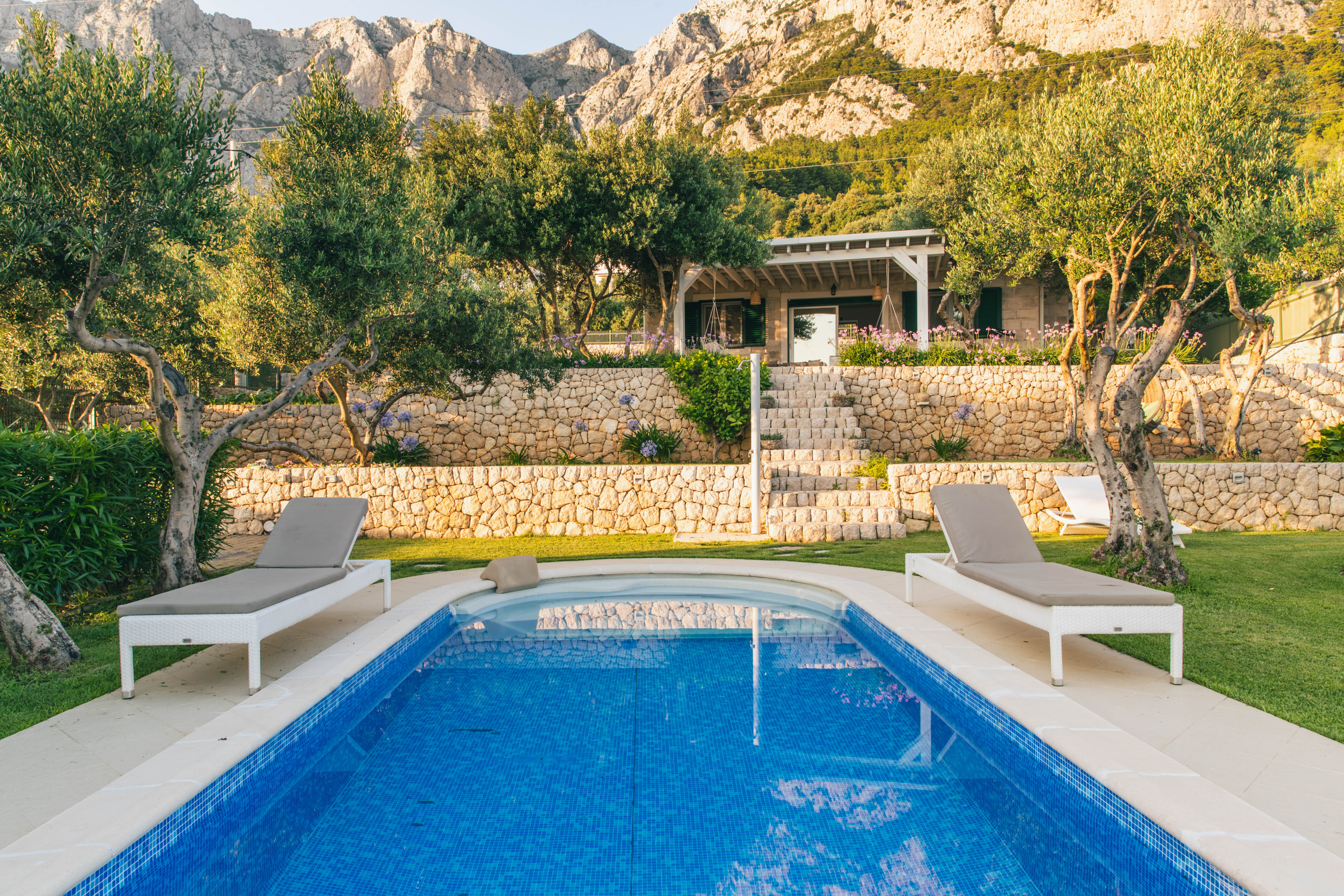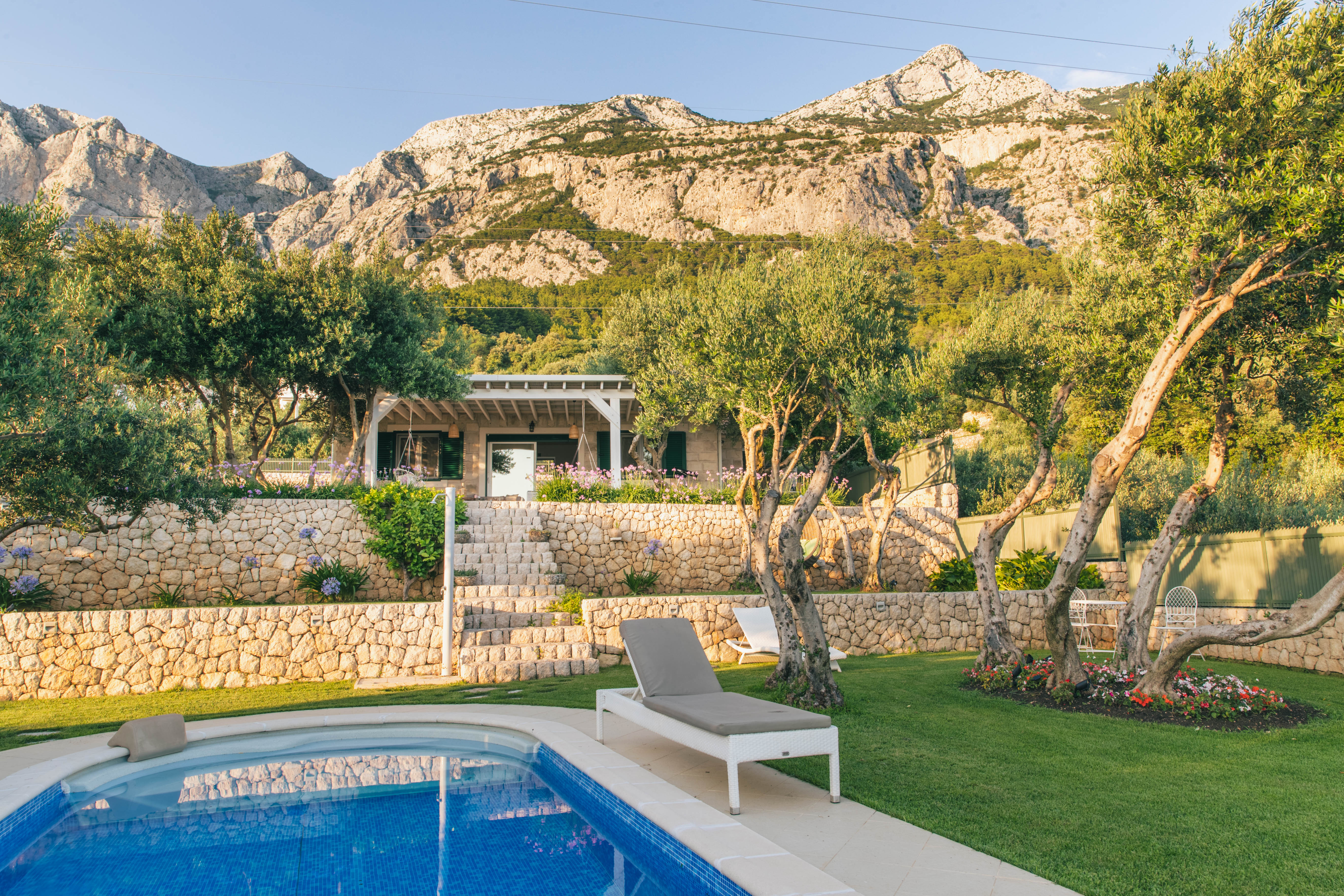The charming Tamaris villa is located in fragrant Mediterranean greenery and olive trees in Veliko Brdo, Makarska. This villa is the perfect choice for those who want absolute relaxation in the full privacy of the fully fenced plot.The exterior of this beautiful stone villa exudes the traditional Dalmatian spirit and is built from the famous Brač stone while the interior represents a successful blend of traditional and modern elements creating a desirable and pleasant ambiance in which you will surely enjoy. In the yard of the villa Tamaris, dominated by a beautifully landscaped lawn on several floors, there is a beautiful swimming pool. Spend and enjoy the sun on comfortable sun loungers by the pool, while the outdoor barbecue on the last floor of the villa will be used to prepare fresh and delicious dishes for Your family and friends can enjoy a covered terrace with a dining area. On the villa`s grounds there is an eco-garden with seasonal vegetables and herbs for guests.