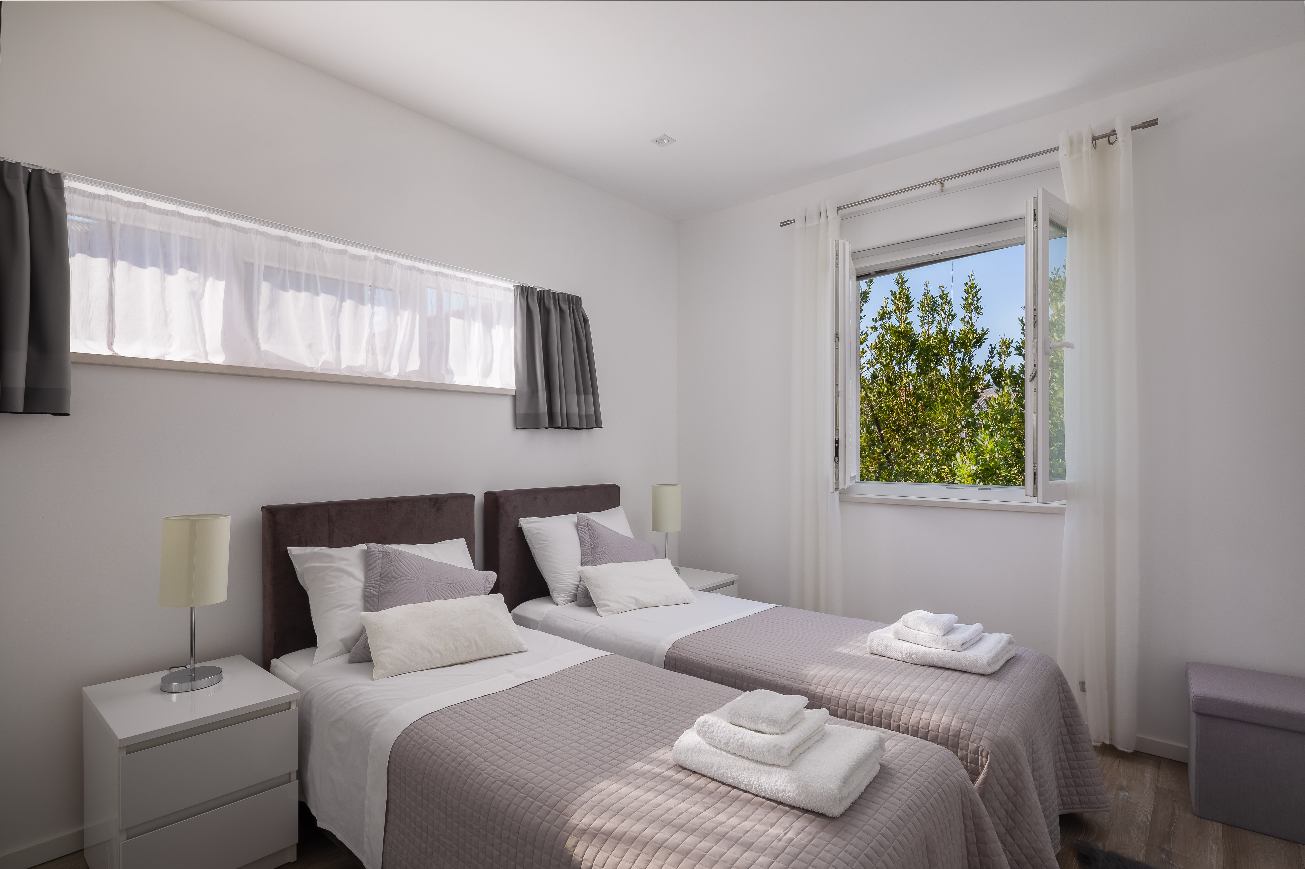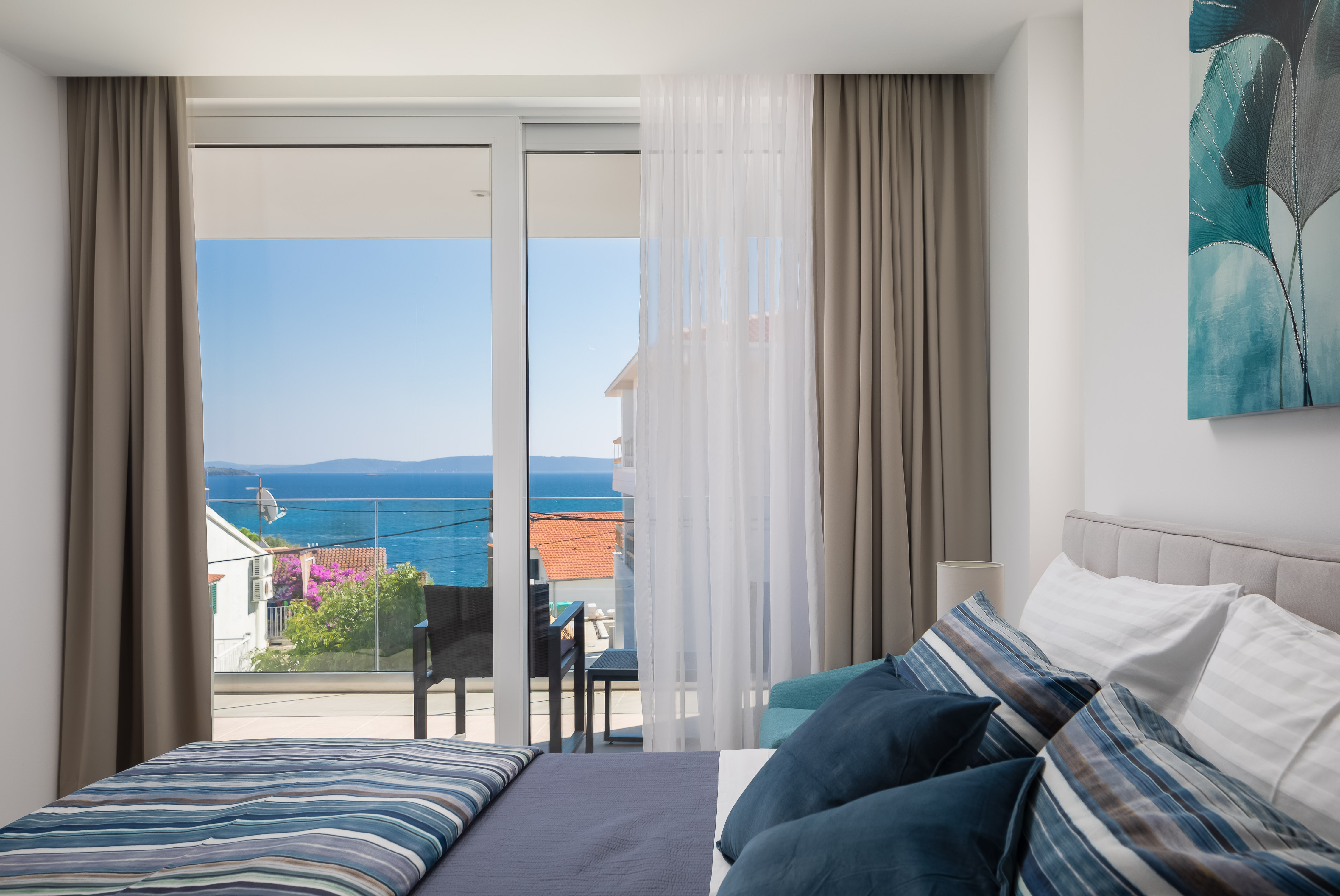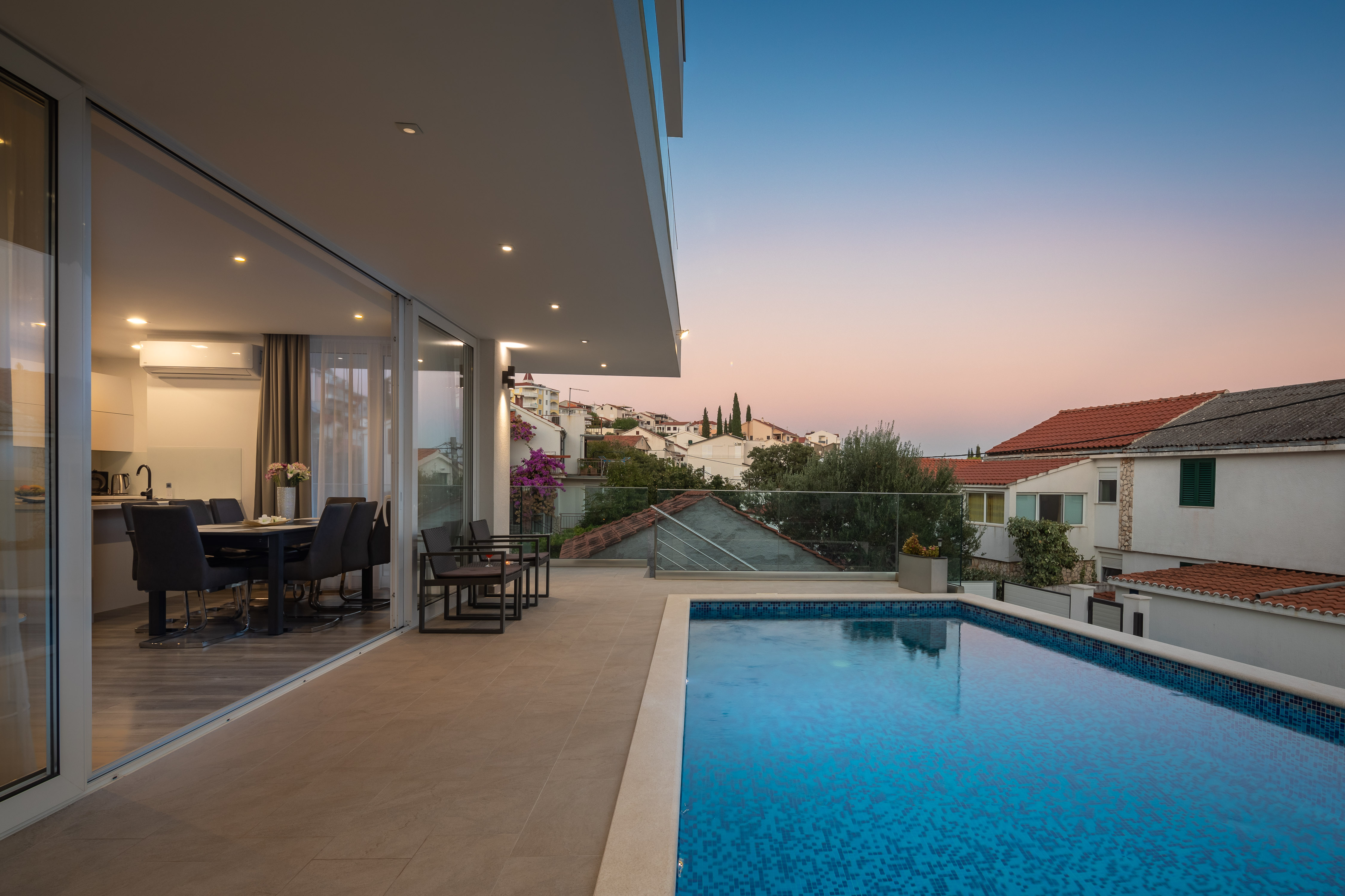 Villa Antony is located in a small quiet place Seget-Vranjica, only 5 km from Trogir. The villa is located only 60 m from the beautiful and crystal-clear Adriatic Sea and beaches with a beautiful view of the surrounding islands and the sea. Villa Antony offers luxurious, comfortable 4 rooms, equipped with state-of-the-art equipment and high quality furnishings, 3 bathrooms, a fully equipped kitchen with a dishwasher and an oven and open living room with terrace access. Guests can enjoy meals on the sea-front terrace and garden with a large pool. Guests wishing to travel lightly can make use of towels and linens for an additional supplement. Parking is available. In Seget Vranjica, as well in Trogir surroundings, you will find a great choice of sports activities. There is a major advantage of the Villa Z&Z: an excellent transport link with the Split airport only 11 km away, Šibenik 55 km, the capital of the region Split 33 km away, NP Krka 70 away, etc.