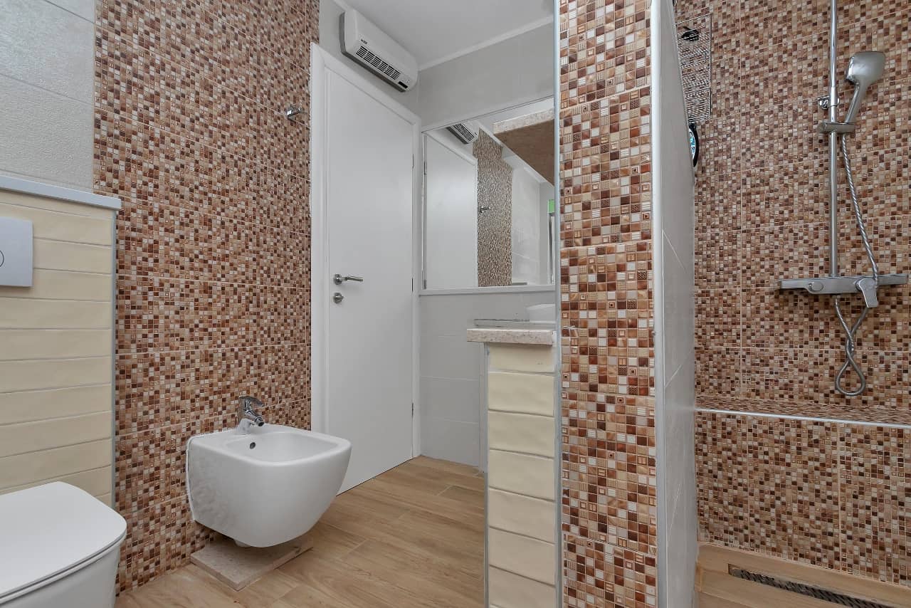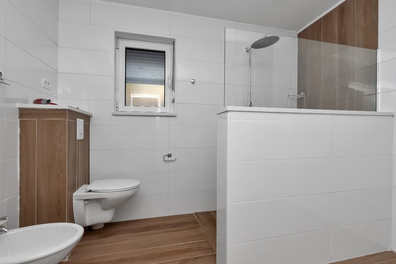 Modern bathroom plus an additional outdoor shower